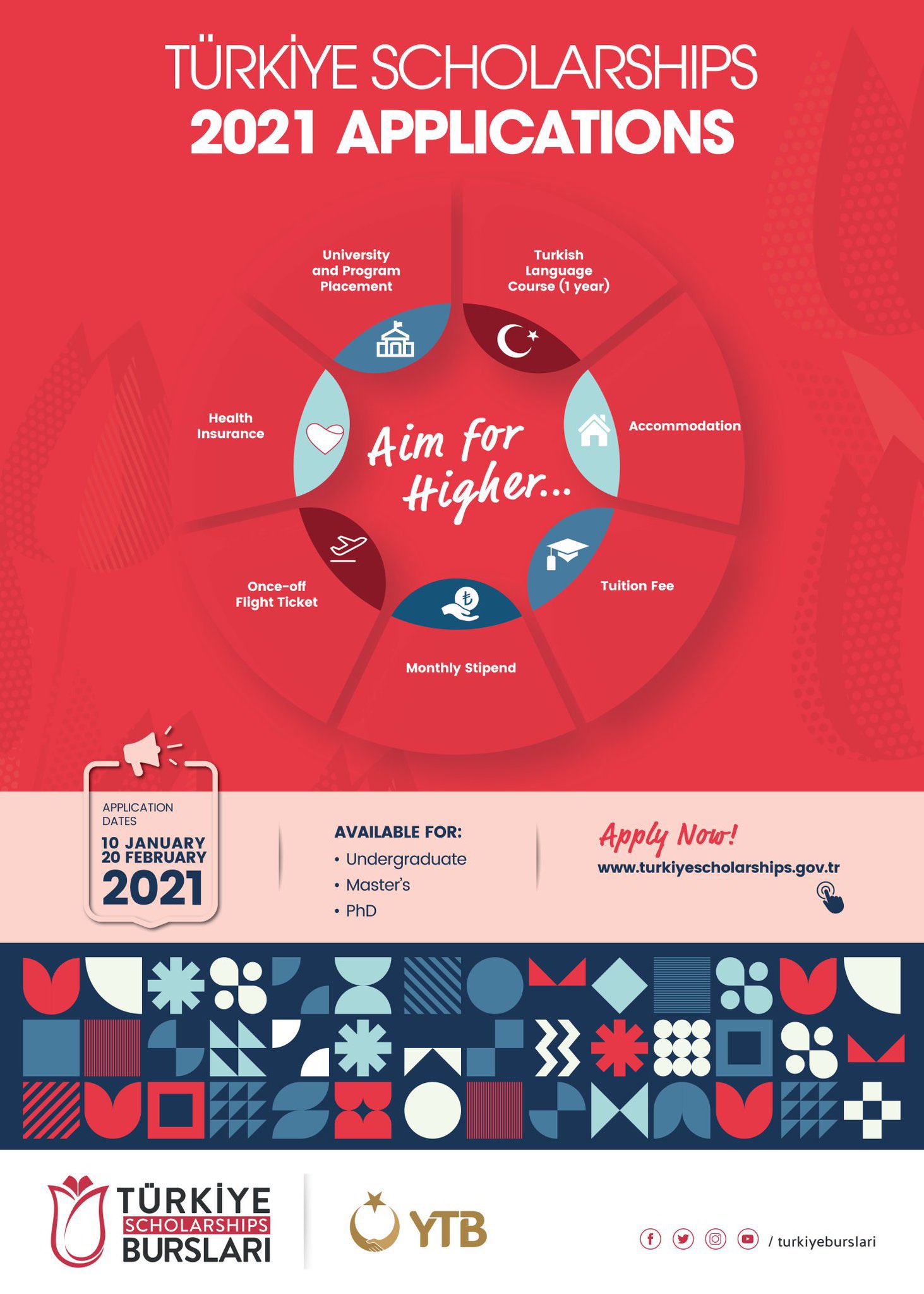 In order to apply, please kindly visit: https://turkiyeburslari.gov.tr/en/announcement/turkiye-scholarships-2021-applications