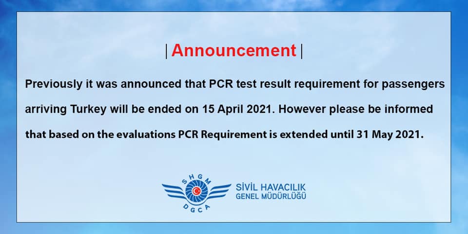 Travel Advisory concerning Covid-19 PCR test result requirement for all airline passengers inbound to Turkey: